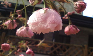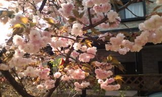 庭のボタンザクラ開花宣言。今朝、一枝だけ4個咲いた枝があったが最高気温が22度だった今、樹全体がピンク色になってきて、開花も増えてきた。写真は今朝撮ったもの。