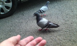 いつも鳩が来ている所に精米に行く。この前は少し離れて見ていたが、今日は触れそうに近い所まで来る。お米を与えた人がいるのかも知れない。
