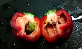 今日も赤いパプリカに緑色パプリカが入っていた。