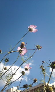 先月の選挙の時に咲いていたコスモスの花が数は少ないけどまだ咲いる。