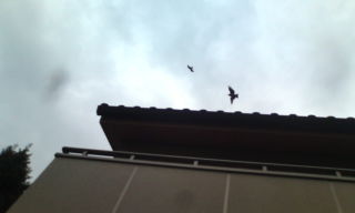 コロの用足しに付き合って庭に出るとトビが3羽頭上を旋回中。