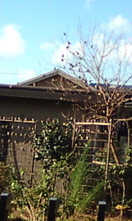 昨夜、台風並みの強風に備えて仕事から帰ったコロ父が寒さに震えながら桜の木に脚立がつっかえ棒になりました。