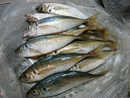 有難い事に、釣り好きのお隣さんからいただいたが食べきれないから食べて欲しいと、グレ3匹と小鯵9匹をいただいた。