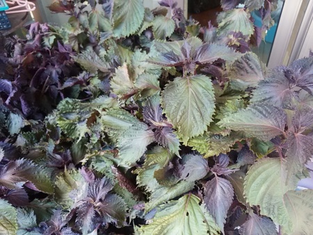赤紫蘇が良く育ち、表は緑に裏は紫になっているが飲める物になるかどうか頑張ってみる。