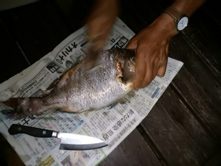 今夜はアイゴを半分にして塩焼きにしてみました。