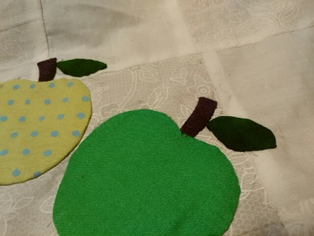 パッチワークと言う時間つぶしがありますがちょっとして休憩、ちょっとしては眼が疲れたから休憩、おまけにコタツに座るとリンが膝にきてといった具合で出来たのは葉っぱ5枚のアップリケだけ。