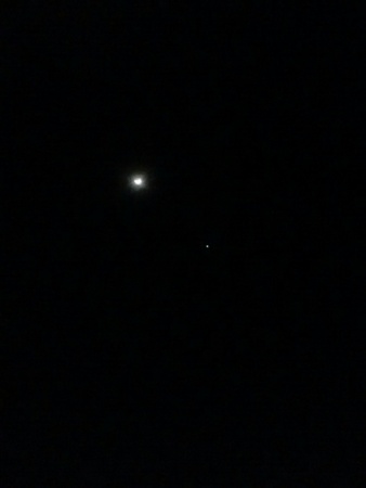 昨夜は月が金星より下にあったが、今夜は少し遅いだけなのに月が上。