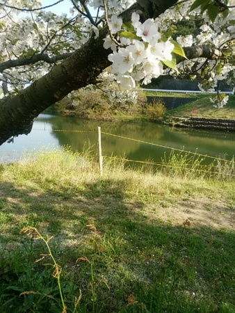 帰りはまだお花見をしてないと言うとちょっと回り道でお花見しようと池の土手へ。