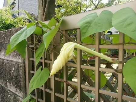夕顔(ヨルガオ)の蕾が膨らんでも咲かないのはこの暑さからなのか。