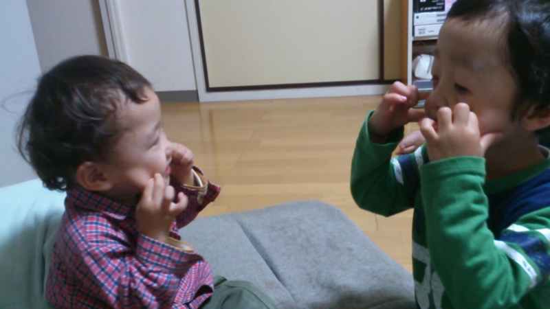 あっかんべーをして大笑いしてたかと思ったらオイラのスマホのゲームで取り合いになり...1号が泣くという(笑)弟が強いよね、こういう時(^◇^;)