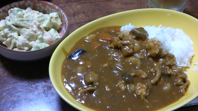 カレーとサラダおいしくできましたん(・∀・)
