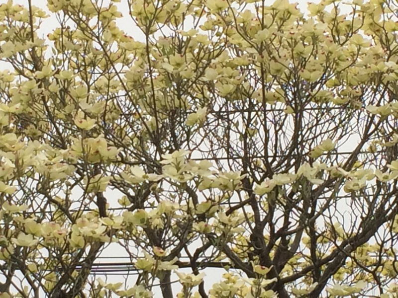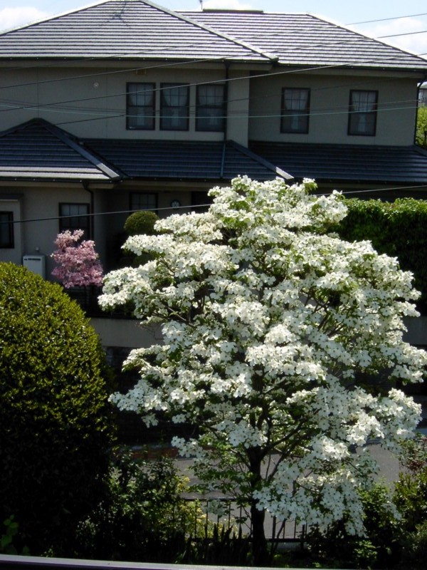 10年くらい?前からハナミズキは流行になってるせいか、今5分ほど歩いて動物病院まで行く道筋であちこちのお家の庭にハナミズキが植えられていて、白やピンクの花が開花してる。