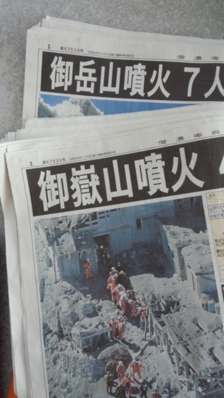 近隣の総合病院は、御嶽山からの患者受け入れのため、一般救急患者受け入れ停止とのこと。