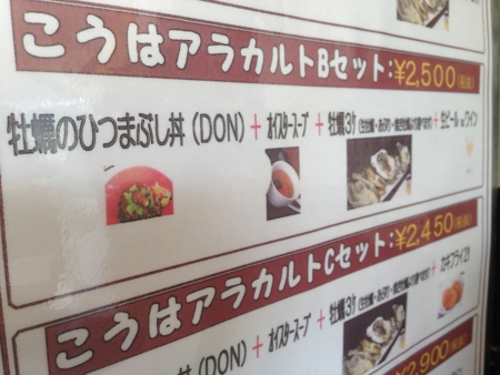 牡蠣3個を、生、あぶり、焼きで一つずつ頂けるとのこと