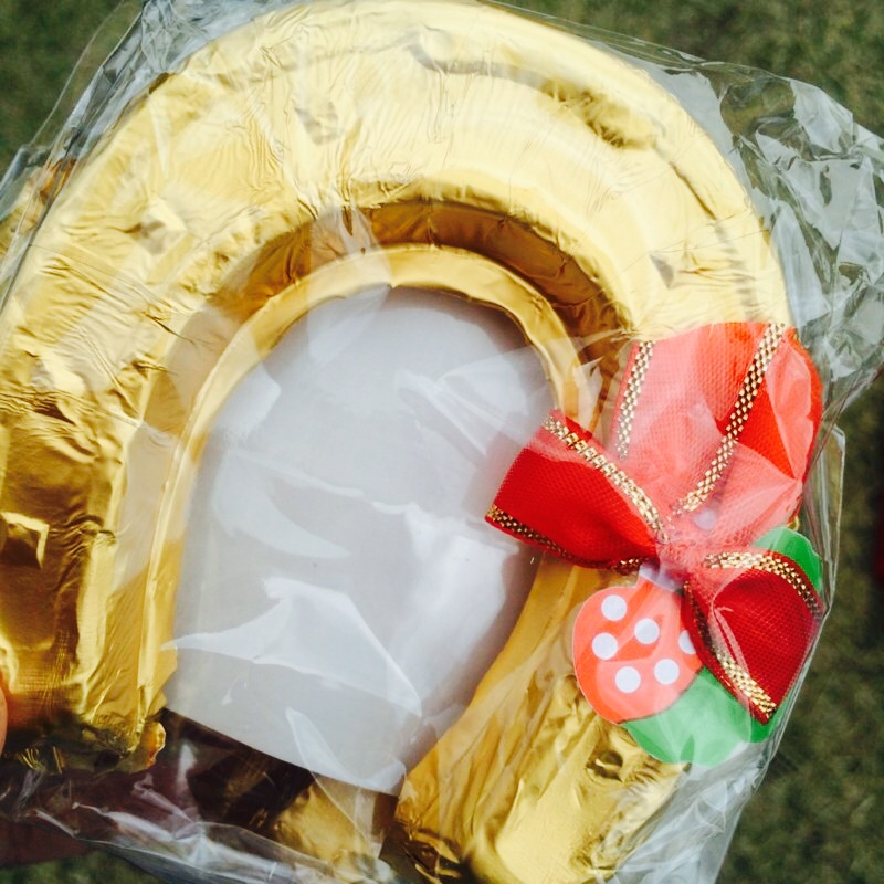 それから、まけうま部長からいただいた蹄鉄型お菓子、王子にも言い値でおすそわけするよ!