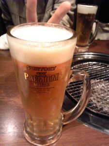 一昨日、焼肉屋でいただいたプレミアムモルツ。