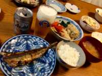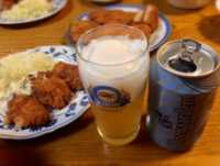 スーパードライの小さめの缶を、煮物やイワシのハーブ焼きなどと共にいただきました。