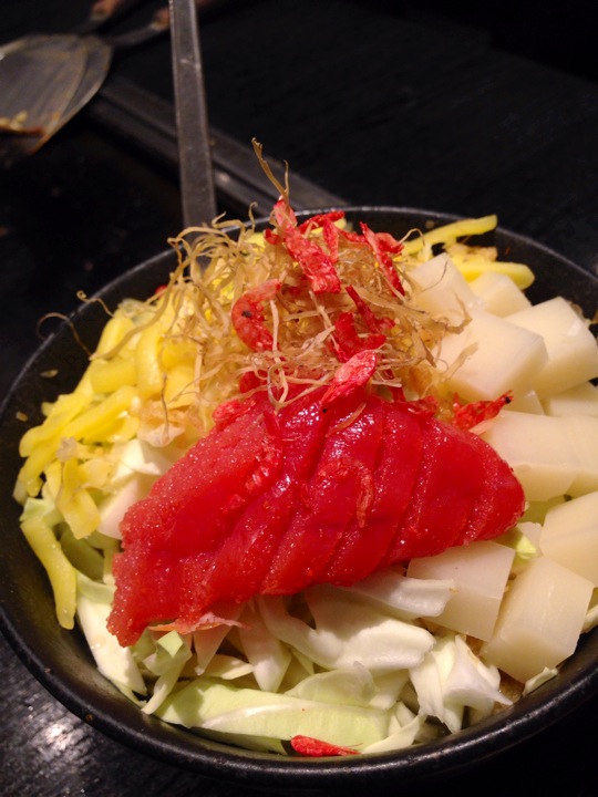 (その他、生姜イベリコ豚のもんじゃ、サラダなど。)