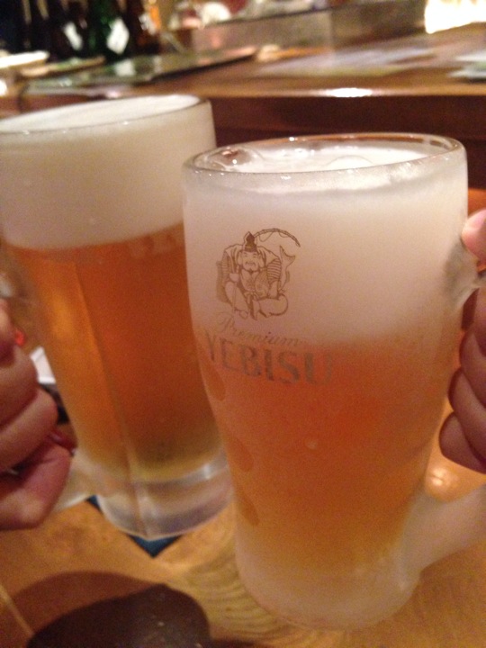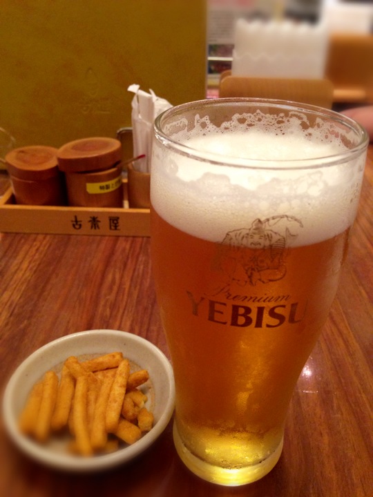 池袋の古奈屋でエビスの生ビールをいただきました。