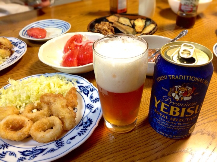 イカリング揚げ、オーガニックトマトサラダなどをお供に♪(´ε` )