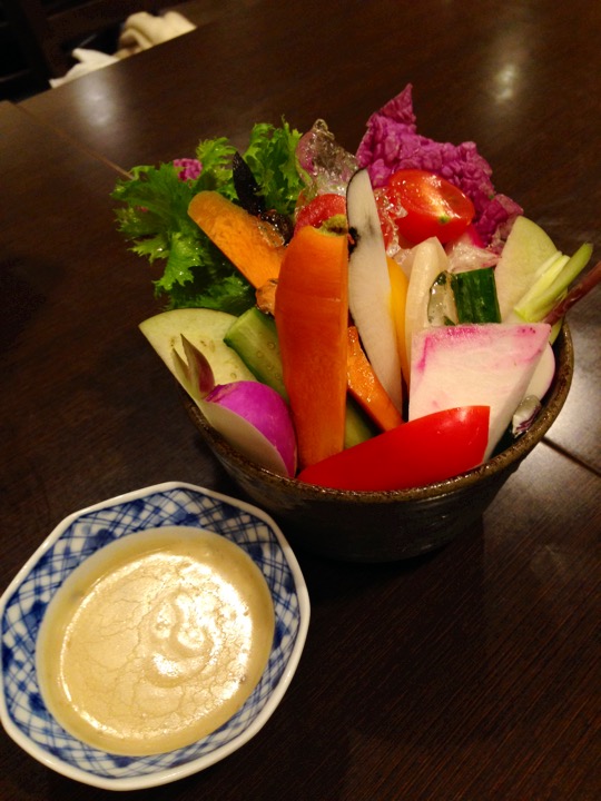 おつまみは牡蠣のオイル漬け、能登半島の有機野菜バーニャカウダなど♡