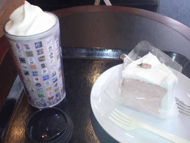 桜シフォンケーキとストロベリーフラペチーノ。