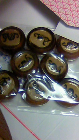 ミルキーチョコいちご味2/3箱、チョコがけおかき(ミルクチョコ、ホワイトチョコ各1)、黒胡麻生八つ橋1
