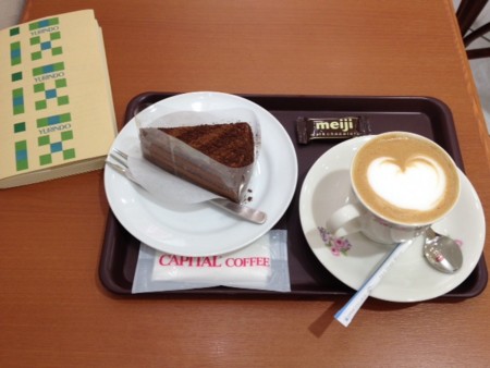 ま、バレンタインだしチョコレートケーキたべますよね、とマルキーズショコラとカプチーノ。