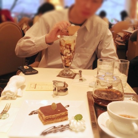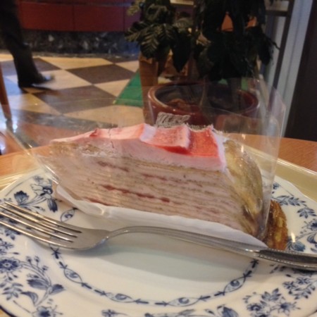 世田谷文学館でクラフト・エヴィング商會を見た後、併設のカフェで、くるみキャラメルパウンドケーキ。