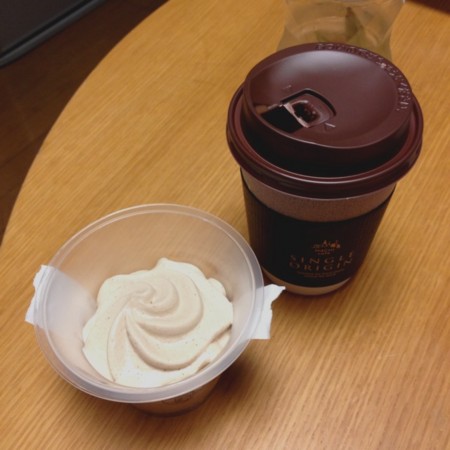 年内最後、短時間でいつもの何倍になるかならないかわからない勤務前にジャマイカンラムボールとアイスミルクコーヒー。ドトール休みにつき。