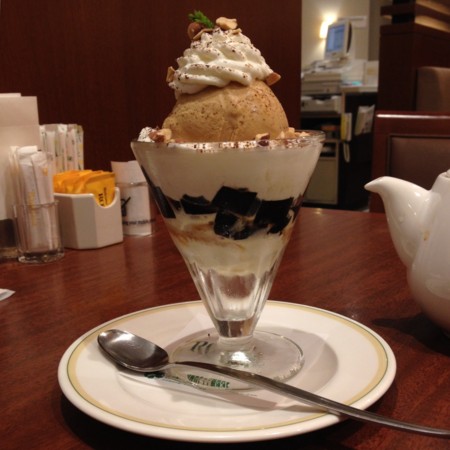 これは昨日の。ロイホのコーヒーゼリーパフェ。いちごブリュレパフェのような感動はなかったなあ。なにせ、コーヒーゼリーが少なすぎ!