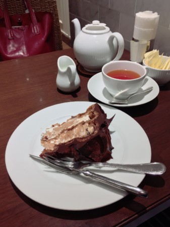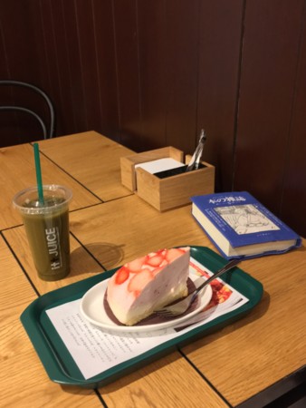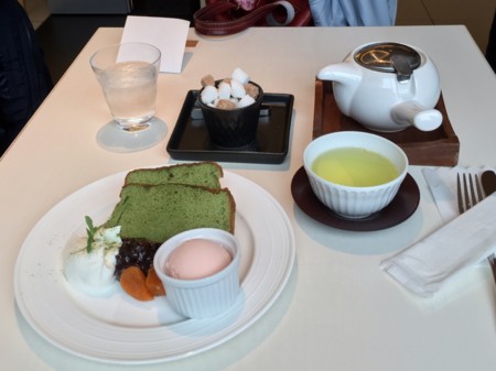 昼ごはんにアースデイ東京会場で鹿肉椎茸筍のハンバーガー、無添加ソーセージ盛り合わせを食べ、そこからの出社前に抹茶ガトーショコラとダージリンのアイスティ。