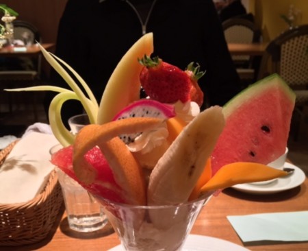 フルーツパーラー充してきた。わたしは和栗パフェ、他の人々はマンゴーパフェ、フルーツクレープ、フルーツサラダ(という名のフルーツ盛り合わせ)。