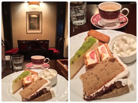 高田明美さんの原画展を見に吉祥寺へ。吉祥寺っぽい地元発のお店はどこも並んでるので、カフェ・ラ・ミル。……スリー・ハーフ・ケーキセットがあるなんて言われたら、それにしますよね。で、キウイのレアチーズケーキ、苺のミルフィーユ、紅茶と無花果のシフォンケーキ。
