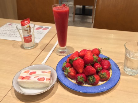 いちご食べ放題、それはテーブルに練乳チューブを立てたグラスが置かれるとともにゴングの鳴る戦場。パスタ、いちごサンドイッチ、紅茶、コーヒーのほかは、味蕾のすべてがいちご味で覆われる。ってか一皿のポーション多すぎて1と1/6くらいでギブアップ。やはり果実園は恐ろしいところだった……。