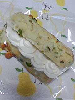塩がきいた枝豆入りのパンに、甘さ控えめホイップクリーム
