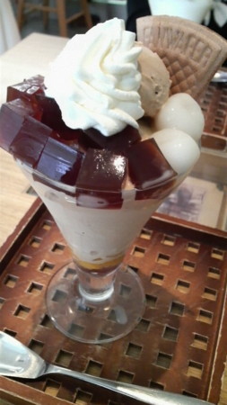 雪印パーラーの生キャラメルいちごミルクパフェ…だったかな?