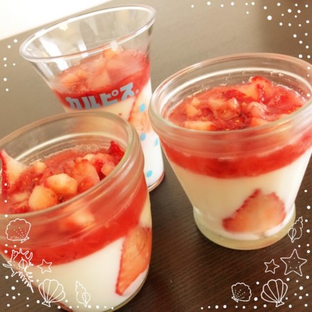 ということで家事えもんのレシピで、いちごの牛乳プリンを作ってみたー。