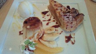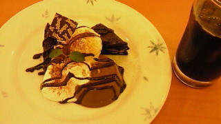 プリンアラモードパフェとチョコバナナパフェの写真見て迷ってしまい