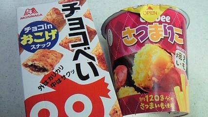 左のチョコべい、本当は昨夜食べたけど久々のヒットー!! (゚д゚)ウマー