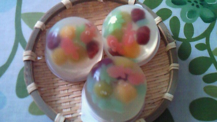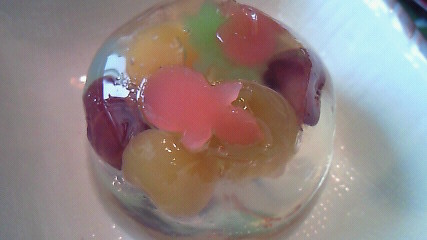 半額になってた可愛い金魚鉢、( ´-`)。o 0(寒天と豆類のお菓子。)
