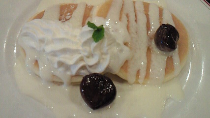 メニューを読んだら「マロンとチーズソースのパンケーキ」・・チーズソースか~。(ё)