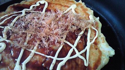豚肉とイカ、揚げ玉も入れてます。(^p^)