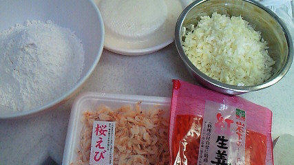 昨日、桜海老が安く買えたので お昼にお好みを焼くことに…