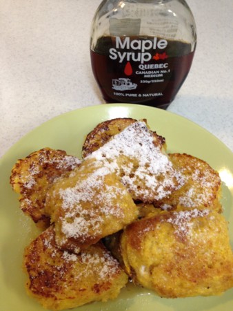 朝に食べる時間が無くて、カチカチになったパンをフレンチトーストにしました。