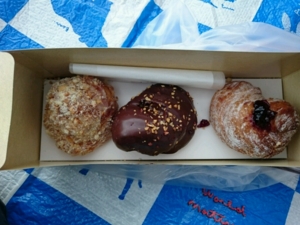 片方1個に決められないので真っ二つに。ミスドのブリュレドーナツも♪ (๑•̀ㅂ•́)