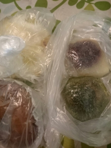 左下の黒糖の蒸しパンみたいな物を買おうとしたら、店員さんが「美味しくないから止めた方がイイよ」ですって