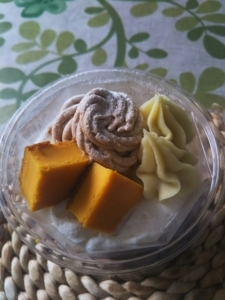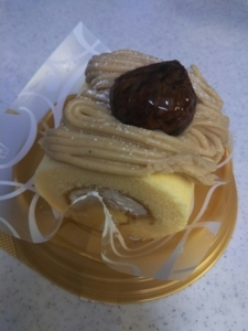 ロールケーキはスフレロール生地だし、中のクリームに刻んだ栗が入ってて歯応えアリ♪リピします!