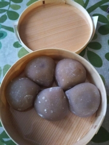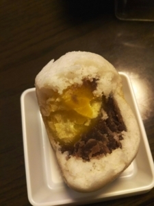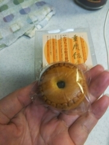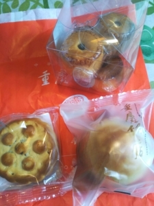 この前重慶飯店で買った月餅のカボチャの小月餅だけ食べて、賞味期限が長いから他は後で…。(^^;