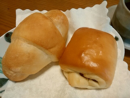 左はコロ父の半日ドックで貰ってきた塩バターパン。